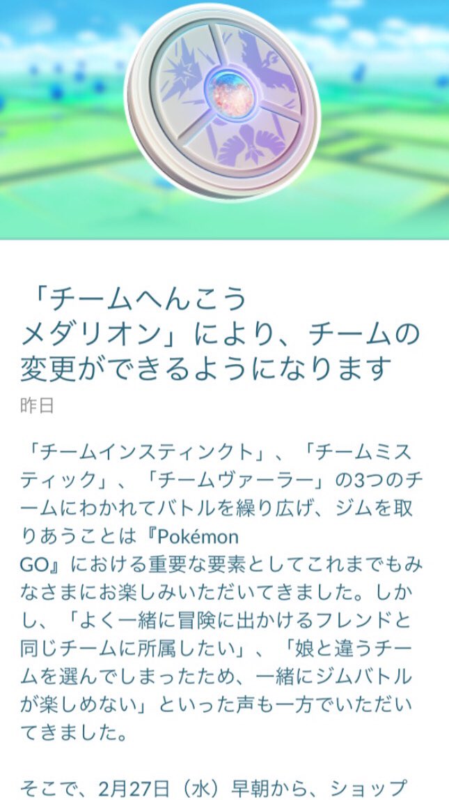 ポケモンgo チームへんこうメダリオンでチーム変更ができる